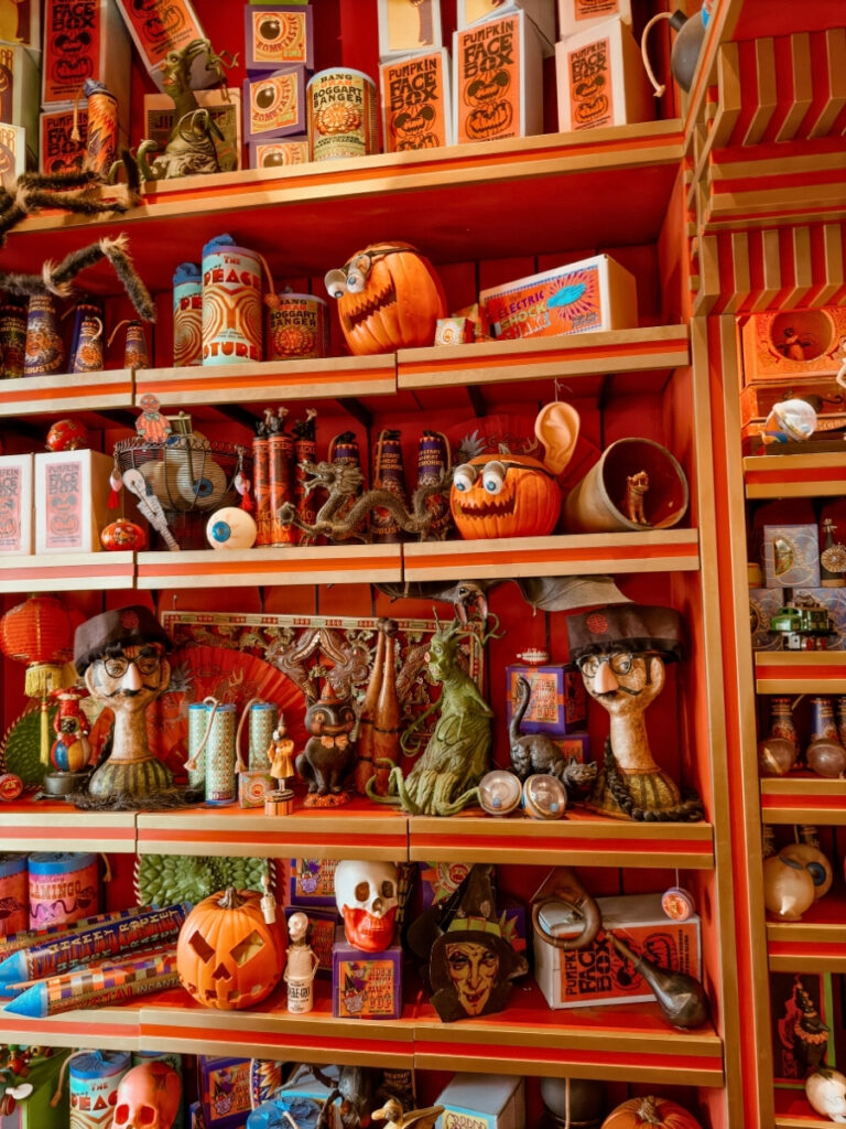 Zonkos overflows with novelty items and jokes. On our first visit, it had plenty of Halloween-themed items.