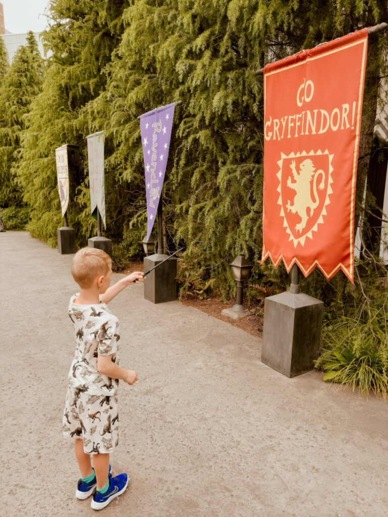 Armed with his new Sirius Black interactive wand, our youngest son managed to try out all eight spells. There was always someone friendly around to correct his spell-casting technique to ensure magic could happen. Our son magically levitated quaffle balls, unlocked gates, made a chimney flame, opened suitcases, summoned clouds, and made quidditch banners rustle.