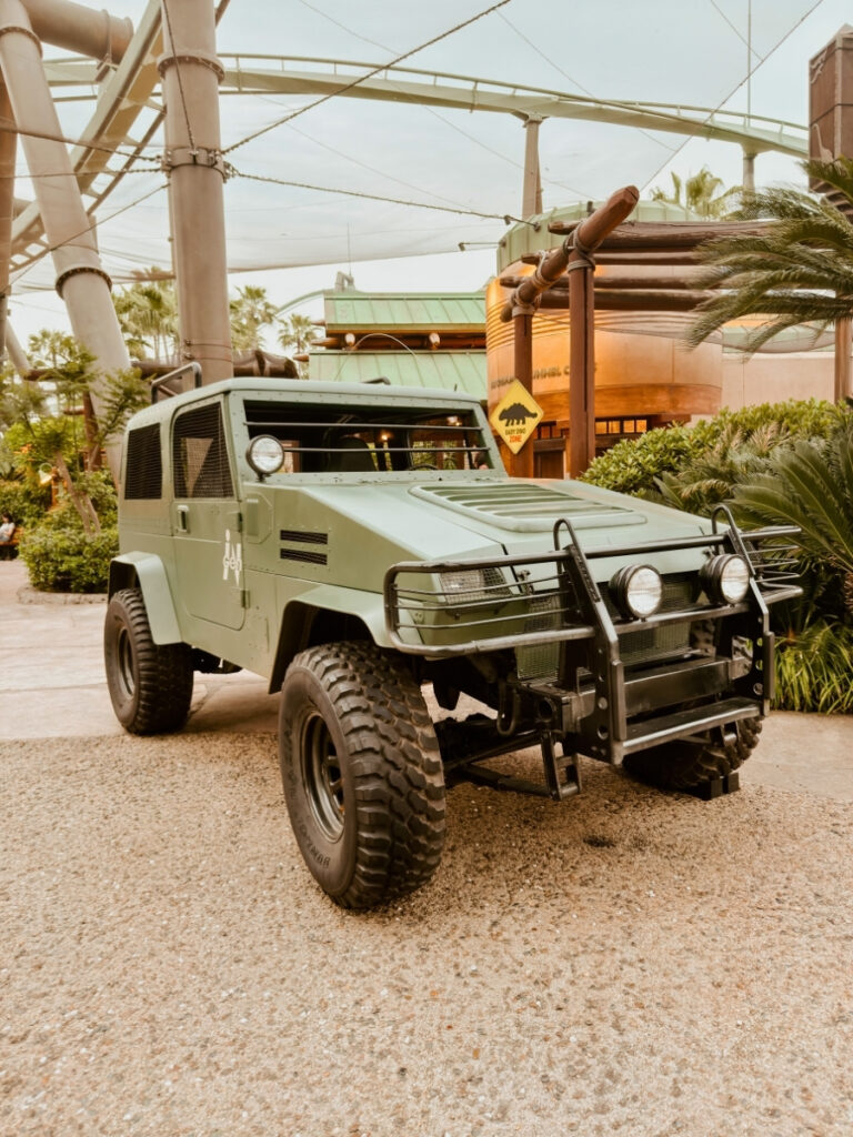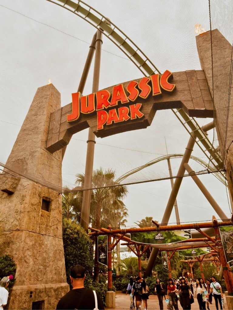 Jurassic Park: The Ride is a takes you on a boat ride through a river surrounded by dinosaurs. The many animatronic dinosaurs are lifelike as they move and make noises. In the end, the boat enters the laboratory where a T-Rex is attacking, and to escape the boat has to plunge down a huge slide at the end. I would have braved the big drop of this ride to experience this ride outside of the youtube video but our kids didn’t want to ride it and I wasn’t keen enough to do a solo ride. My husband on the other hand rode it as a single rider with just about a 20 minute wait and he enjoyed it.
