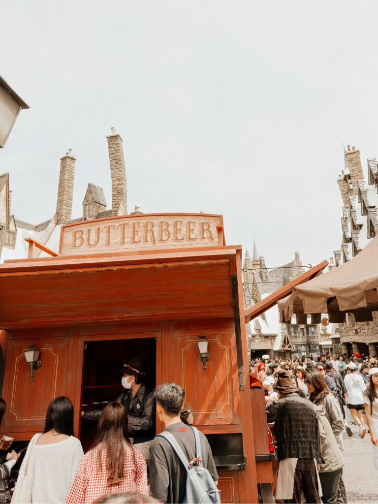 At Harry Potter Osaka, butterbeer is a non-alcoholic drink. Butterbeer can be bought from Three Broomsticks, Hog’s Head or the two butterbeer carts and can be enjoyed in a number of different ways: