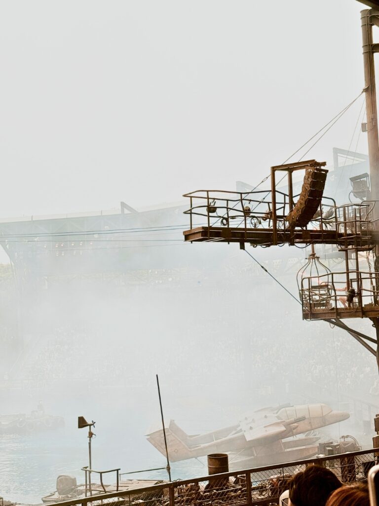 If you’ve seen the stage show in Los Angeles Universal Studios then this one is much the same except in Japanese of course. It is based on the action movie from 1995, Waterworld! The actors play out a fighting scene with jet skis, gunfight, and explosions which my 5 year old son found very exciting.