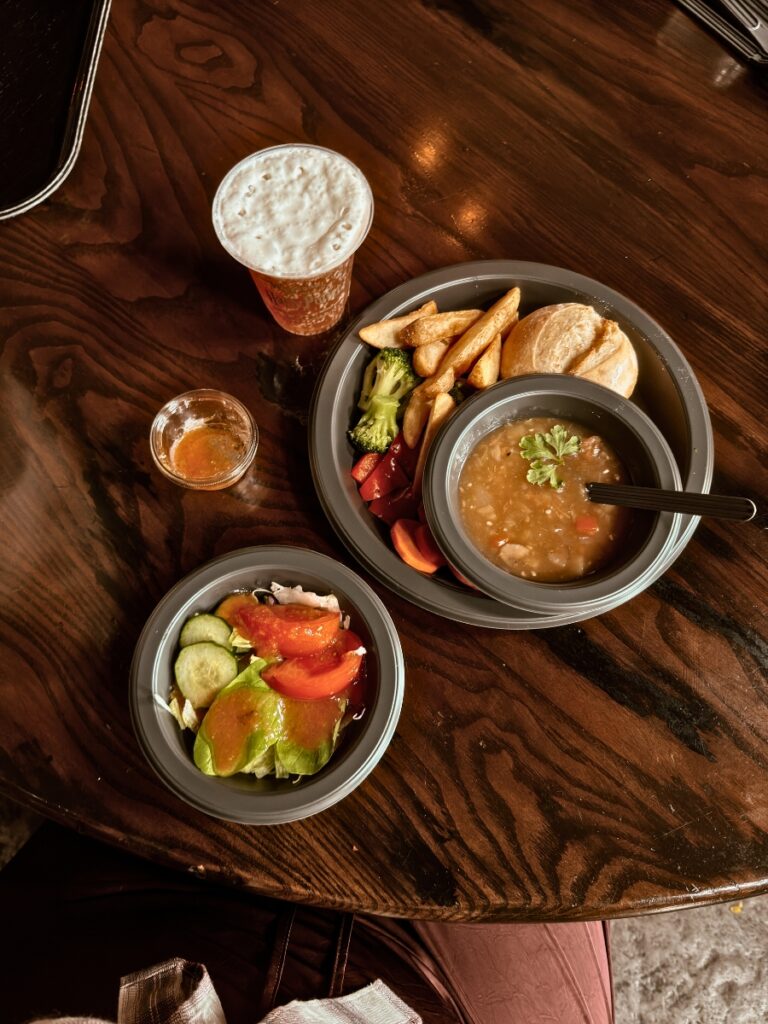 I had the Vegetable Irish Stew which was 25 yen as well as the Plant Based Butterbeer which was 8 yen, and there’s the option to get a souvenier cup with it for an additional 6 yen.