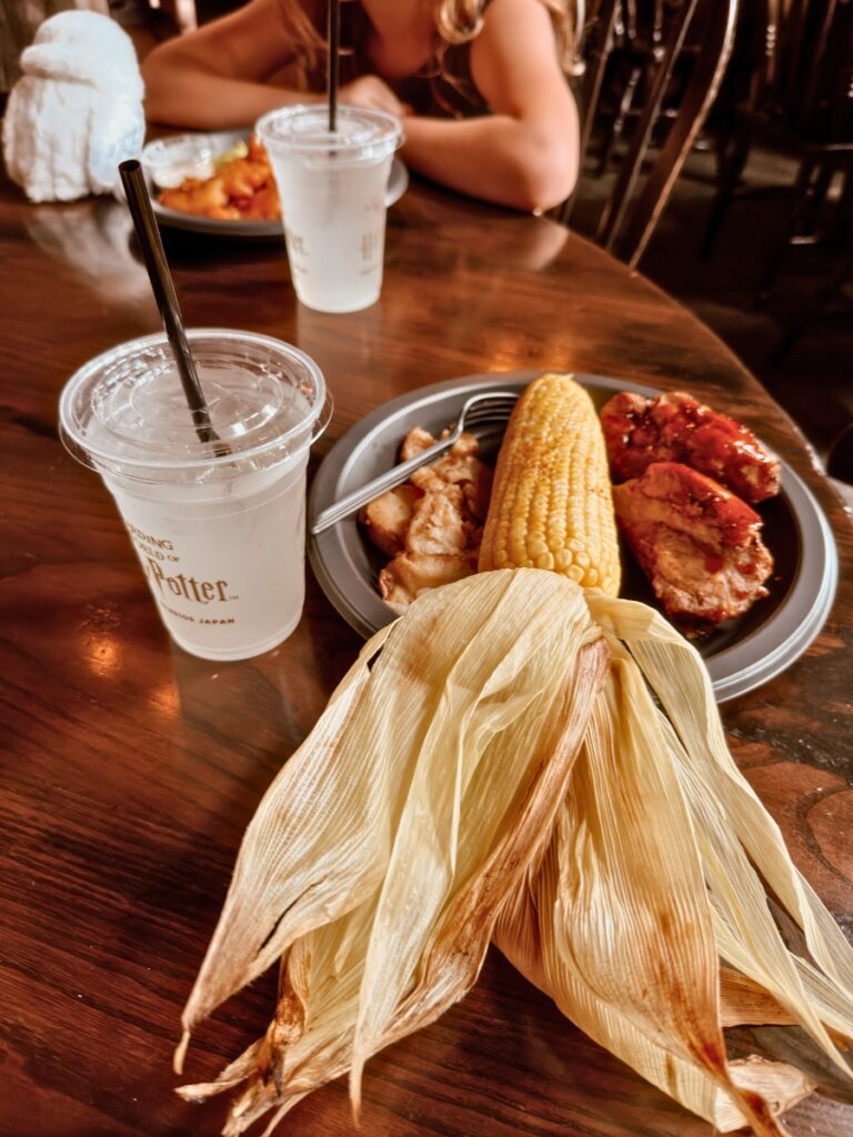 There are a limited number of choices for food and drinks at Harry Potter World Japan but they all help immerse you further in the world of Harry Potter. You can eat at Three Broomsticks (a traditional English tavern), drink at Hog’s Head pub, or down a Butterbeer from the two barrel-shaped butterbeer stands in Hogsmeade Village.